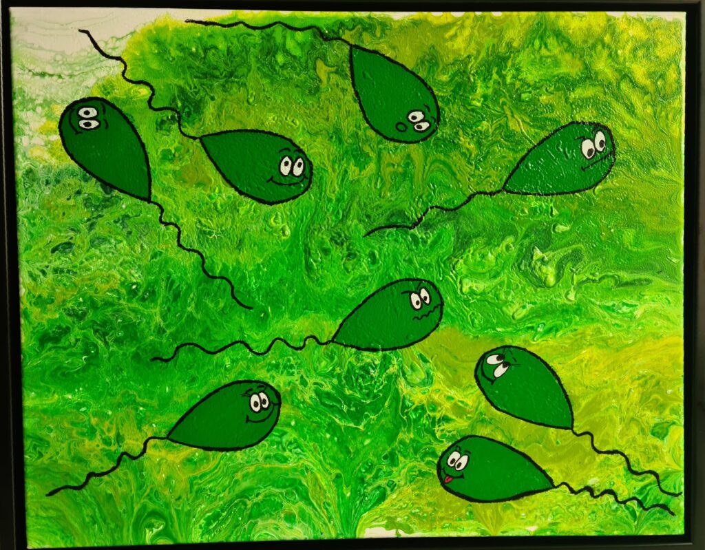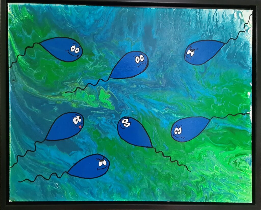 livets begyndelse – sædceller. jeg tænkte på alle de forskellige personligheder vi bliver til og hvilket humør vi er i livet igennem.